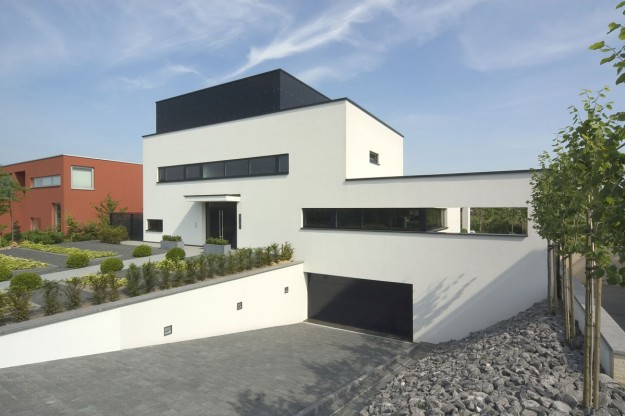 in een nieuwe wijk in simpelveld waar dertiger-jaren architectuur als voorwaarde werd gesteld, realiseerden wij dit sfeervolle pand – het woonhuis werd voorzien van alle moderne techniek en kreeg een strak maar karakteristieke dertiger-jaren uitstraling – een strakke roodbruine baksteen, wit geschilderde houten delen en dakgoten en een schuin pannendak karakteriseren deze woning