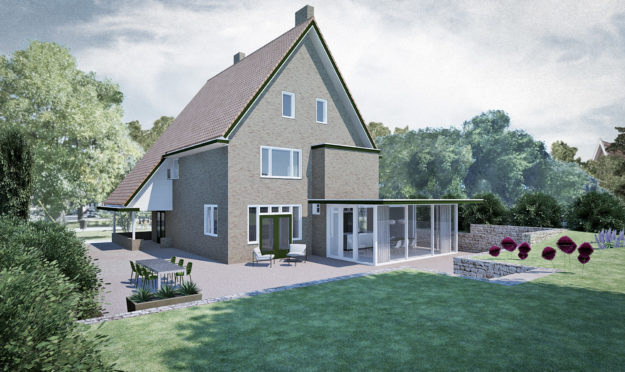 Opdrachtgever Particulier Ontwerp 2020 Realisatie 2021 Werkgebied Verbouw, wonen Opdracht Het ontwerp voor de uitbreiding van een aanbouw aan een gemeentelijk monument in Schinnen.