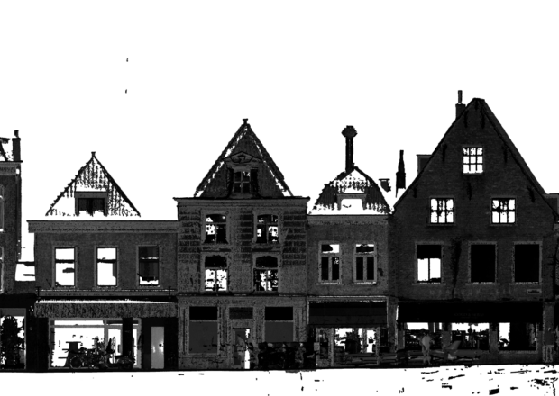 Twee gekoppelde panden in een historische binnenstad, waarvan één een rijksmonument met een oorsprong in de 16e eeuw, omzetten in een Building Information Model (BIM), is op de traditionele manier met behulp van oude tekeningen en een meetlat bijna onmogelijk. Daarom hebben we de panden laten scannen en vast laten leggen in een pointcloud.