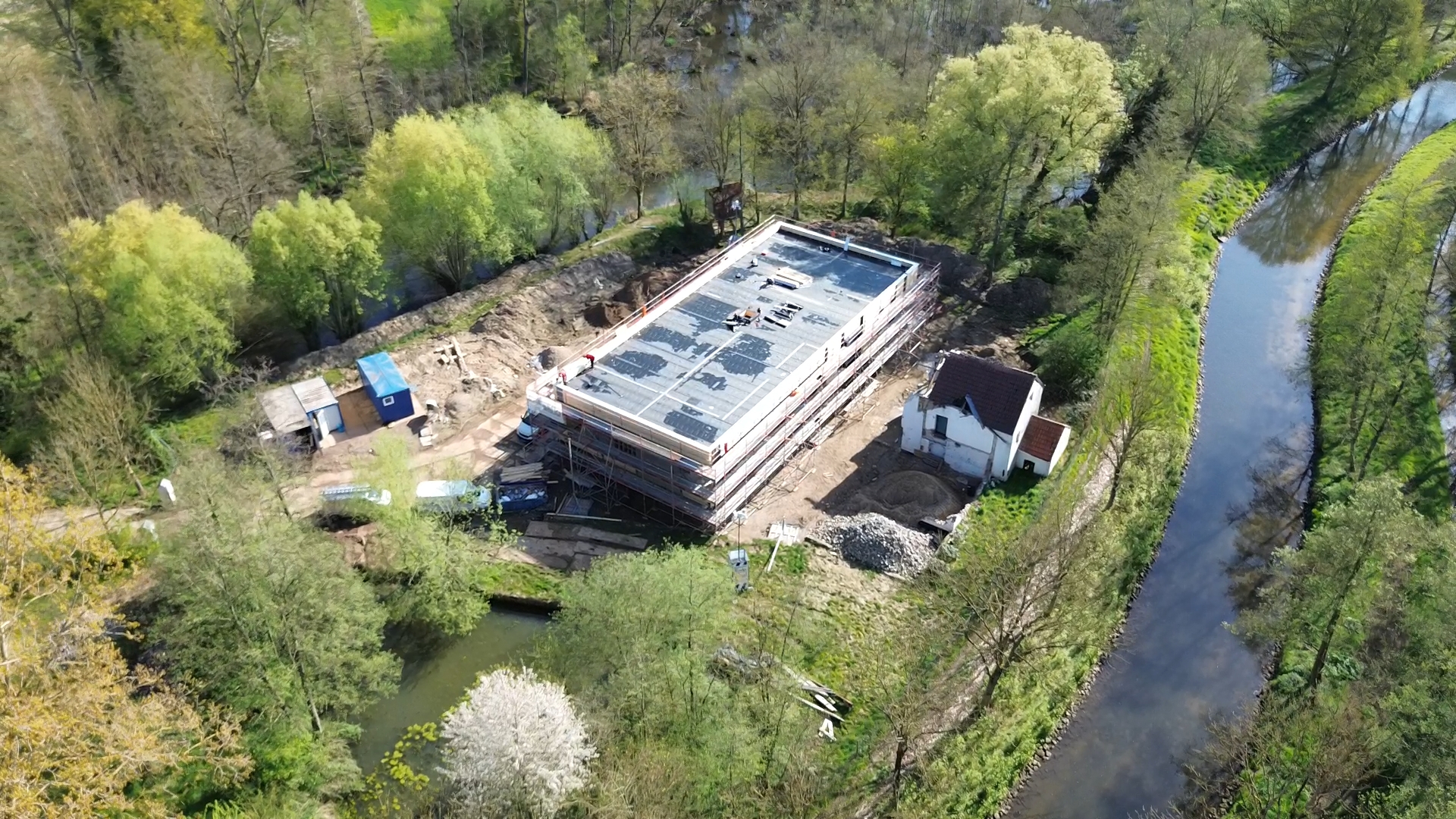 Langs de meanderende Geleenbeek ligt binnenkort deze bijzondere woning, waar architectuur en landschap in harmonie samenkomen. Om voorbereid te zijn op mogelijke wateroverlast is de woning strategisch opgetild boven een robuuste betonnen kelder. Daarop rust een lichte, volledig in hout opgetrokken bovenbouw die zich als vanzelf in het landschap nestelt.