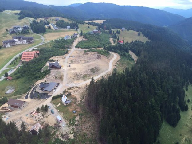 een helicoptervlucht in slowakije: een verkenningsvlucht voor weer een nieuwe skidome.